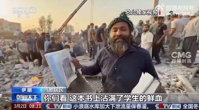 当地民众愤怒表示:“孩子们今早是来上学的,如今却被掩埋在废墟之下!这是孩子们的课本,书上沾满了学生的鲜血。”